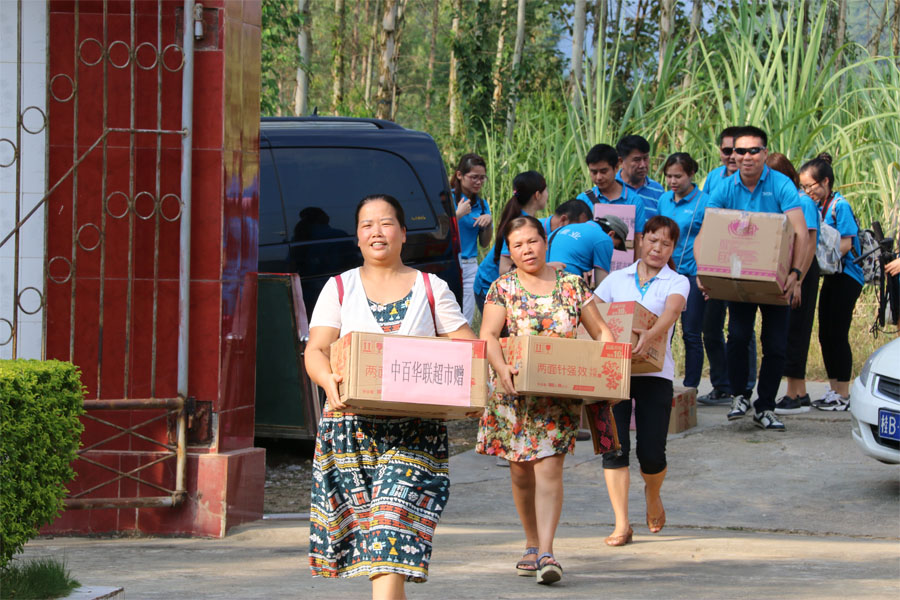 與柳州慈善協會(huì),柳州工貿商廈,柳州中百超市中高(gāo)層,柳州巴利寶品牌忠實VIP共20多(duō)人,驅車(chē)幾百公裏,趕往柳州市三江